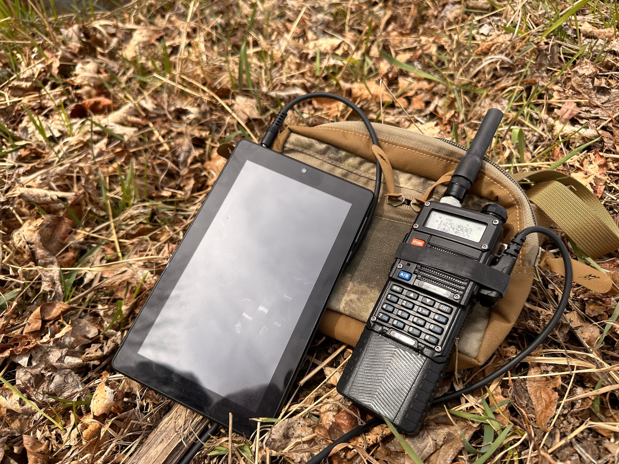 I went for a walk outside and took my Android tablet and Baofeng with me to get a feel for using these tools outdoors. I want to share some observations and quick lessons I learned while playing with my radio and tablet outside.