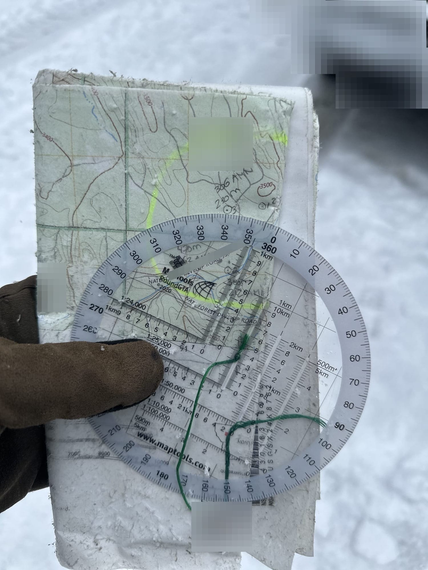The protractor was purchased at the MapTool website (See the link above). I want to use a laminated map next time, because my water-resistant map started to get destroyed during that morning outside.